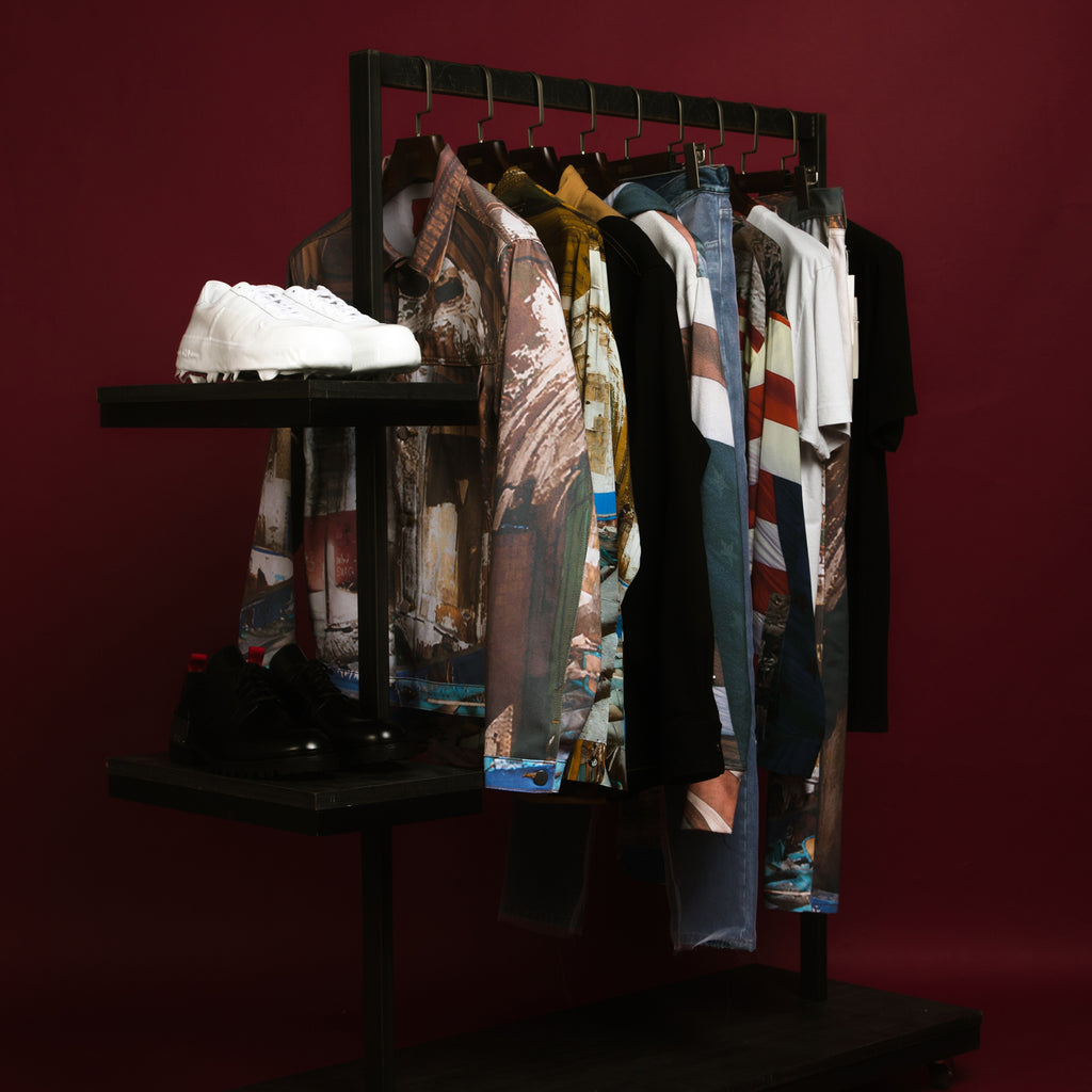 Founded in 2010 by Guillermo Andrade, 424 started out with a jewelry line and has expended to clothing line. This season is inspired by Malcolm X, '90s rap and police brutality (armored police force image with the ironic caption "We're here to help" series). The brand shows a new street-luxe American fashion.